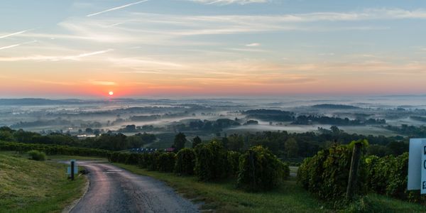 Your next stop is Cana Vineyards and Winery in Middleburg. If you're hungry, we recommend a stop at Gilbert's Corner located along Route 50 at the roundabout. There, you can purchase fresh produce at the Saturday farmer's market, or you can grab a barbecue lunch to go. As you continue on Route 50, you’ll travel through the Village of Aldie. If you're in the mood for something sweet, stop by the Little Apple Pastry Shop. For those who'd like a shopping break, we recommend locally owned Mercer Tavern Antiques. Once you arrive at Cana Vineyards and Winery, delight in visual reverie. You can walk among the fields, taste wine, and savor the region’s orange-lit sunsets. At Cana, you are welcome to bring snacks, or you can purchase the vineyard’s light fare. If you've brought your pups along for this trip, they are welcome at Cana too.
